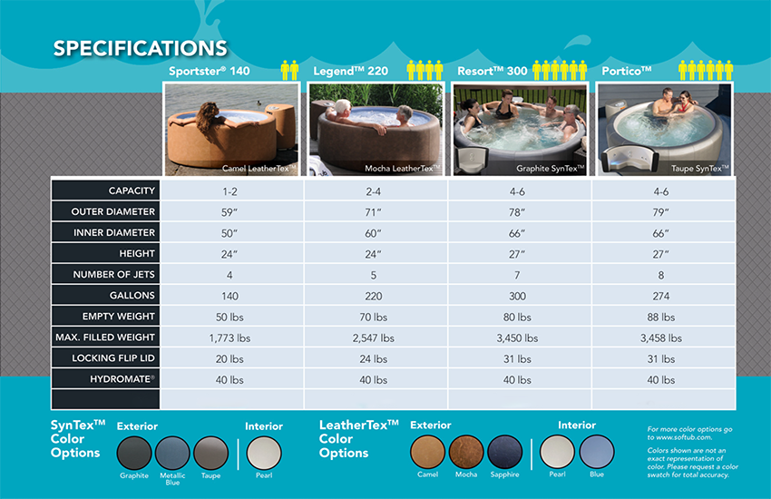 And don't let the thought of high-energy bills stop you from purchasing this spa. The Softub® spa is the most energy-efficient, truly portable hot tub. Just take it home, hook it up, add water and enjoy!